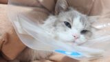 ガーゼ交換が嫌すぎて悟りを開く猫。