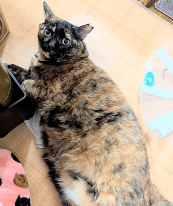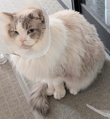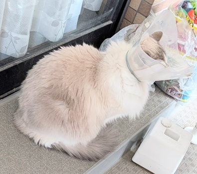 毛繕いする頻度も少なく、嫌いな包帯に手をかける事もなく💦