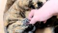 これは肉球と爪の毛繕いをしている猫。