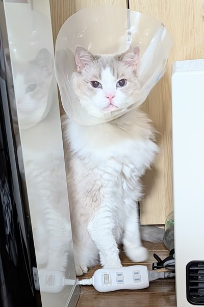 エリザベスカラー回避のために隙間に逃げ込んでましたが、
