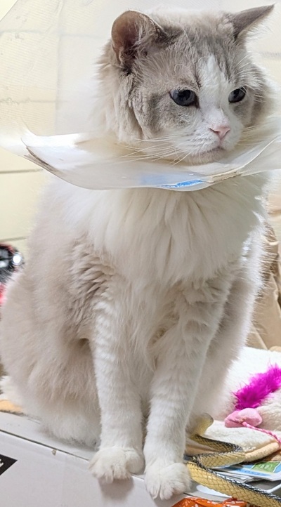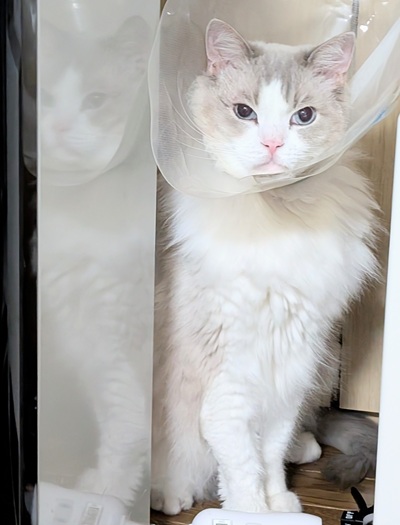 避難していたはずが、エリザベスカラーをつけられて遺憾