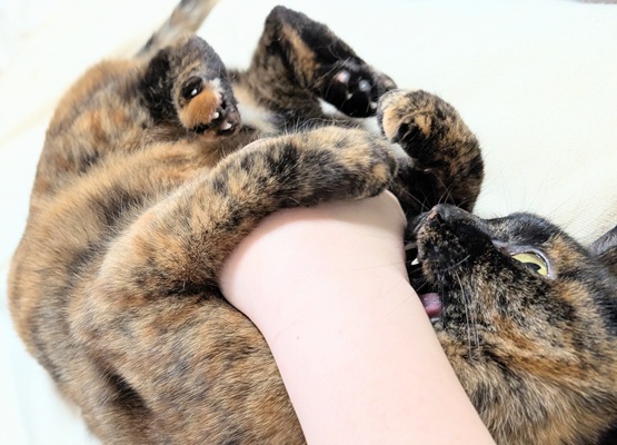 足とか腕乗せてくるのシツコイですよ!ガシッガシッ