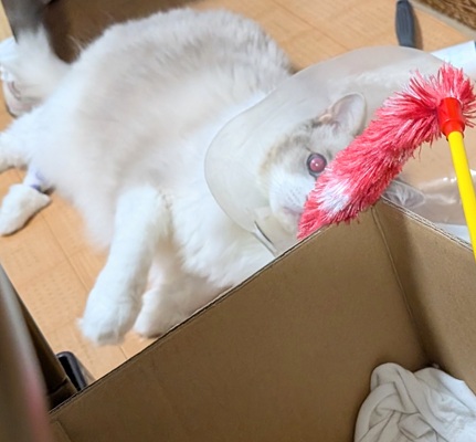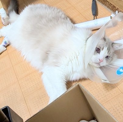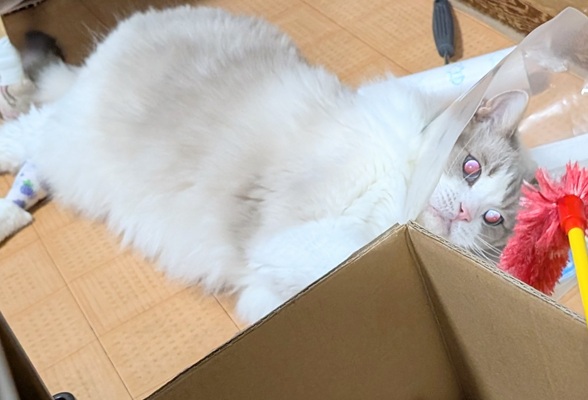 床ごろ寝勢のまお君も箱に飛び入ってましたね😂